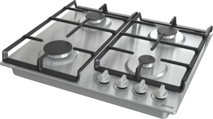 .مسطح غاز، 60 سم ، ستانلس ستيل، 4 شعله، مفاتيح اماميه، حوامل حديد اينامل، امان كامل، اشعال ذاتي