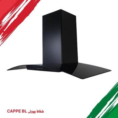 شفاط مطبخ زجاجي أسود 90 سم قوة شفط 1000 م³/ساعة من بيورتي – ستانلس + كريستال – موديل – CAPPE BL